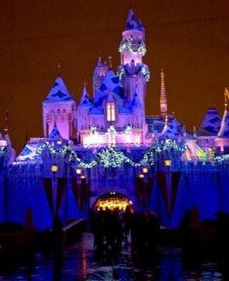 Даже в замке Белоснежки есть праздничные украшения. Ночью несколько раз цвет меняется на более ледяной-синий, а с замка свисают сосульки. Изменения в замке наиболее впечатляющие, когда в конце фейерверка огни меняются с фиолетового на ледяной синий.
