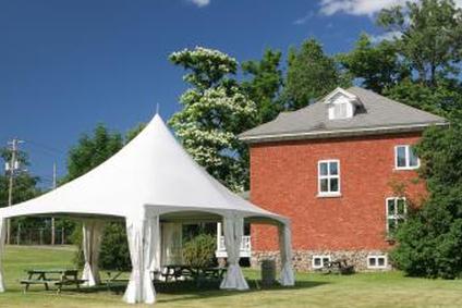 Большинство навесов для палаток изготовлено из огнестойкой, водонепроницаемой и обработанной УФ-излучением ткани. Они имеют легкую алюминиевую или стальную раму. Хотя существуют всевозможные навесы, некоторые большие для мероприятий на открытом воздухе, таких как свадебные приемы, те, которые используются для кемпинга, как правило, меньше по размеру, чтобы их было легко установить.