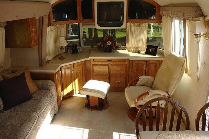 Некоторые туристические трейлеры Airstream имеют две односпальные кровати в основном спальном отсеке, например, эта 31-футовая модель Excella (1999 г.).