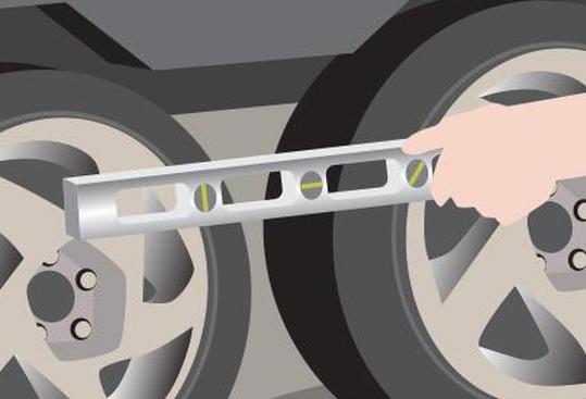 Шаг 1 Используя уровень, выберите высоту колес вашего жилого автофургона, на которой вы хотите разместить нижнюю часть колодки.
