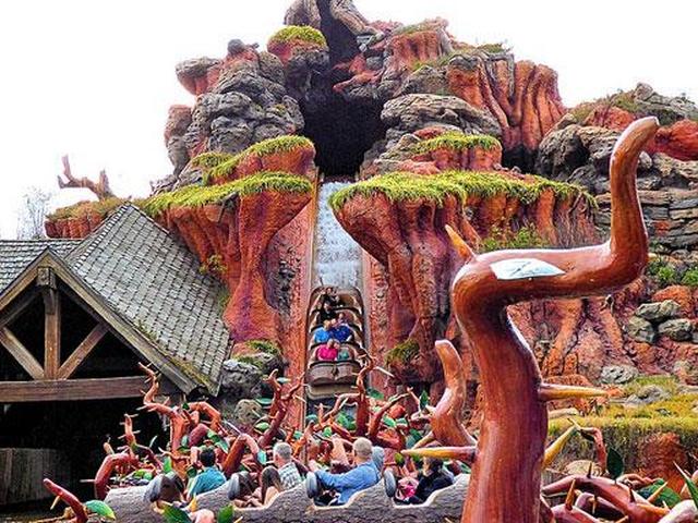 Splash Mountain завершается пятиэтажным обрывом под углом 47 градусов в Chick-A-Din-Hill со скоростью до 40 миль в час. Это сочетание счастливо поющих лесных существ и драматического падения водопада сделало Splash Mountain одним из самых популярных аттракционов в Диснейленде с момента его открытия почти 20 лет назад.
