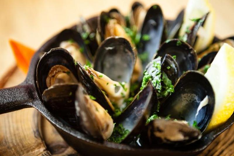 - Уменьшите огонь до средне-низкого. Накройте крышкой и тушите, пока мидии не раскроются, около 7 минут.