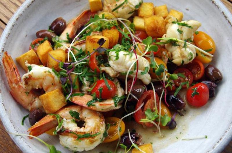 Салат с жареными креветками — не просите гренки
