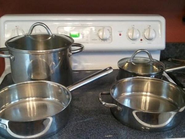 Эта линия посуды изготовлена из очень прочной и прочной нержавеющей стали с инкапсулированным алюминиевым основанием, которое выдерживает большой износ. Когда я купил эту посуду, долговечность не была моей главной задачей, но я был очень впечатлен ее долговечностью.