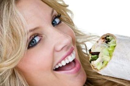 1 8-дюймовая обезжиренная мучная лепешка, намазанная 1 столовой ложкой горчицы и покрытая 2 унциями. нарезанная грудка индейки, ½ стакана нарезанного салата и 2 столовые ложки измельченного острого сыра чеддер с пониженным содержанием жира. Свернуть.
