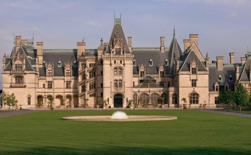 Особняк занимает почти 11 квадратных миль земли и был построен Джорджем Вашингтоном Вандербильтом II в конце 1800-х годов, и на его строительство ушло шесть лет. Это был семейный дом Джорджа и его жены Эдит, а также место, где они могли развлекать друзей и семью. Джордж влюбился в горы Голубого хребта и Эшвилл во время своего первого визита в 1888 году, и только в следующем году он начал строительство своего массивного французского замка.