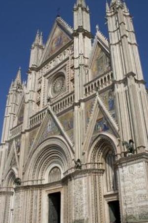Орвието — город недалеко от географического центра Италии в Умбрии. Он расположен на плато из туфа, очень податливого камня, образовавшегося в результате извержений вулканов. Первоначально город был построен во времена этрусков и в конечном итоге был присоединен к Риму. Орвието известен в современном мире тремя вещами: вином, изысканной керамикой и красивым полосатым собором, в котором хранятся работы Фра Анджелико и Луки Синьорелли .
