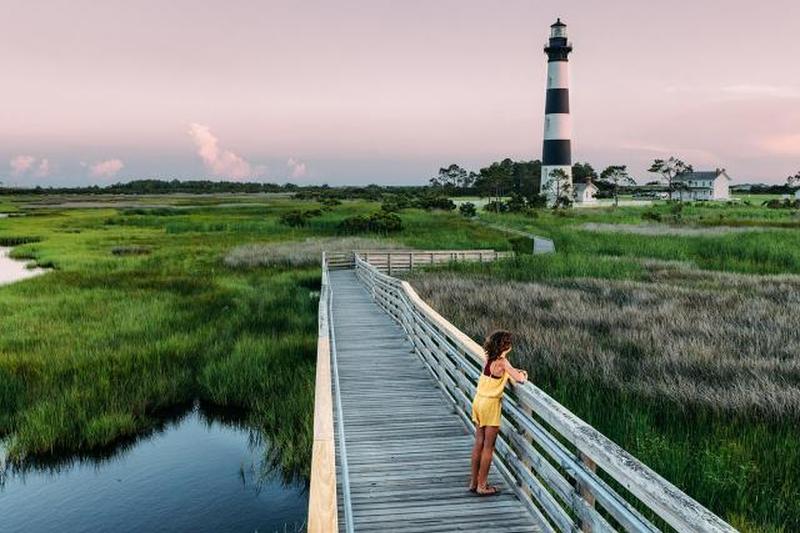 Маяк на мысе Хаттерас (1870-е годы) в Бакстоне является местом нескольких привидений. Расположенный на национальном побережье мыса Хаттерас, призраки не ограничиваются маяком. Дух Теодоса Берра, жертвы кораблекрушения 1812 года, бродит по береговой линии маяка. Талисман маяка, 20-фунтовый кот-призрак, последовал за маяком на его новое место дальше вглубь суши, когда он был перемещен в 1999 году из-за эрозии пляжа. Игривый кот-призрак любит вертеться между ног посетителей, и его можно увидеть внутри и снаружи маяка. Если вы попытаетесь поднять кошку, она исчезнет. Серый Человек из Гаттераса ходит по пляжу возле маяка, когда на море бушует ураган. Если попытаться приблизиться к нему, неуловимый призрак просто исчезнет. Мыс Хаттерас Национальный Приморский открыт круглый год.