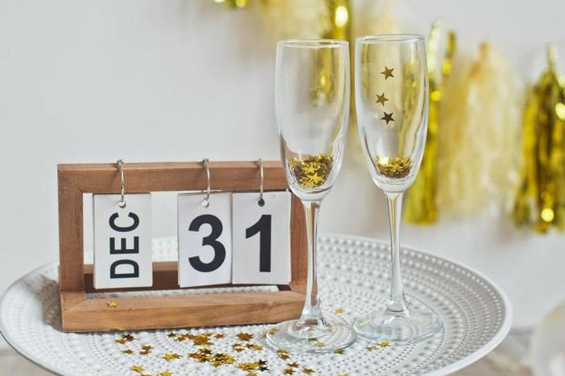 Оформление вашей вечеринки — это визуальное оформление, и иногда в Новый год гаснет свет. Придайте пикантности своему новогоднему праздничному декору, добавив светящиеся в темноте виниловые наклейки с цифрами на воздушные шары, гирлянды, ленты, украшения для стола и даже чашки. Теперь выключите свет, и все оживет. Это может быть удивительно весело для тех фотоопераций.