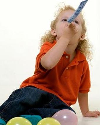 - Пусть ребенок с завязанными глазами подойдёт к стене и поместит палку туда, куда, по его мнению, он должен попасть.