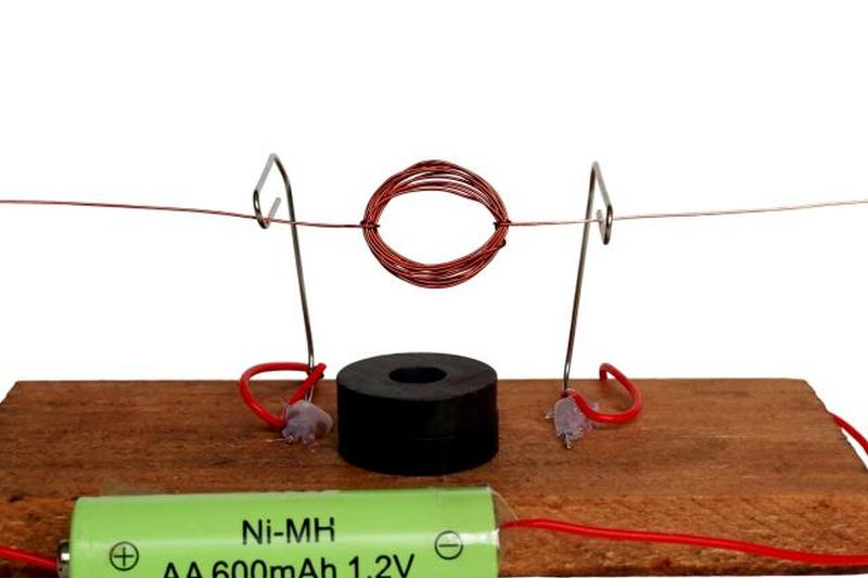 Этот простой эксперимент идеально подходит для детей средней школы, впервые знакомящихся с физикой. Простой электродвигатель — отличный инструмент для обучения детей среднего школьного возраста взаимодействию электричества и магнетизма. Если присоединить магнитную проволоку к батарее и поместить ее в магнитное поле, ток, протекающий по цепи, создаст электромагнитное поле. Затем электромагнитное поле взаимодействует с магнитным полем магнита, позволяя игрушечному пропеллеру, прикрепленному к валу, вращаться.