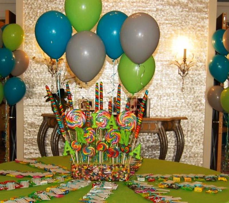 Если вы используете большие леденцы для украшения стола, гости могут взять их с собой домой, чтобы насладиться ими после окончания вечеринки. Создайте моноблок, чтобы гости могли жевать свои любимые сладости во время вечеринки. Накройте стол аптекарскими баночками, наполненными различными видами конфет. Обеспечьте серебряные шарики для конфет и целлофановые пакеты для конфет с лентой, чтобы гости могли зачерпнуть конфеты в пакеты, завязать их лентой и забрать домой пакет, полный конфет, в качестве сувенира для вечеринки.