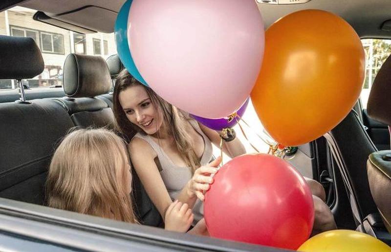 - Ленточные струи и гелиевые шары закреплены внутри автомобиля так, что они возвышаются над окнами водителя и пассажира.