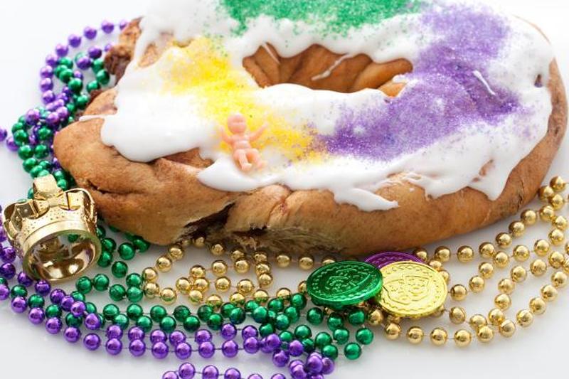 Королевский торт представляет собой плетеный сладкий хлеб, покрытый глазурью и цветным сахаром. Он назван в честь библейских трех королей в знак уважения к религиозным корням праздника. Внутри торта запекают небольшую безделушку, обычно это пластиковый младенец, символизирующий младенца Иисуса. Тот, кто откусывает кусочек с безделушкой, получает честь предоставить торт в следующем году, становится королем или королевой вечеринки или получает какой-либо другой приз или «наказание», назначенное хозяевами вечеринки. Рецепты доступны, если вы хотите сделать свой собственный торт, но вам должно быть удобно печь на дрожжах, прежде чем пытаться это сделать. Если вы хотите попробовать настоящий королевский торт, закажите его в пекарне Нового Орлеана, предлагающей доставку по всей стране, например, в пекарне Randazzo’s Camellia City Bakery .
