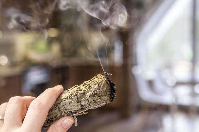 - Зажгите пучок шалфея или рассыпанный шалфей.
