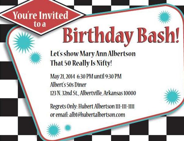 Приглашения на день рождения бывают разных стилей и дизайнов. Поскольку 50 лет — обычно отмечаемый день рождения, существует множество вариантов приглашения. Загрузите одно из бесплатных печатных приглашений, доступных здесь, или воспользуйтесь предоставленными ресурсами для поиска различных стилей.