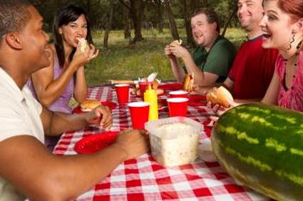 Подумайте о том, чтобы устроить мероприятие с копченой курицей и белым соусом, печеными бобами, картофельным салатом и персиковым коблером на десерт. Если кейтеринг невозможен, попросите добровольцев укомплектовать гриль для гамбургеров и хот-догов, а также попросите гостей принести обычные закуски, такие как чипсы и дип, гарниры и десерты.