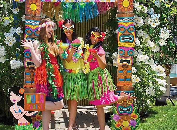 Фотозона своими руками. Повесьте кусок ткани на стену для вечеринки в помещении или на стену здания для мероприятия на открытом воздухе, чтобы создать фотобудку. Синяя ткань — хороший выбор, так как она создаст ощущение океана, или выберите ткань с рисунком в виде тропических цветов. Обеспечьте реквизит и костюмы, такие как травяная юбка и реквизит для фотографий луау.