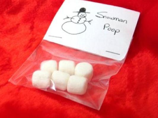 Еще одна вариация на эту тему — «какашки» снеговика. В этом случае используйте для отходов снеговика мини-зефирки.