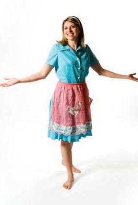 Вы можете сделать вычурный фартук, который напомнит о девчачьей романтике домохозяйки 1950-х годов. Чтобы создать этот образ, выберите ткань с винтажным оттенком. Принты пейсли, мелкая клетка и цветы в стиле ретро идеально подходят для этого типа фартука.