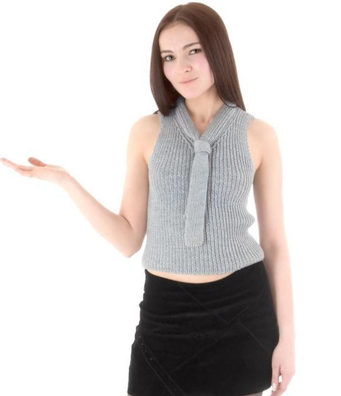 Вяжите себе майку нетрадиционного фасона. Сделайте один с воротником-водолазкой или прикрепленным к нему шарфом — украшения, которые украшают что-то, что в остальном может выглядеть просто.