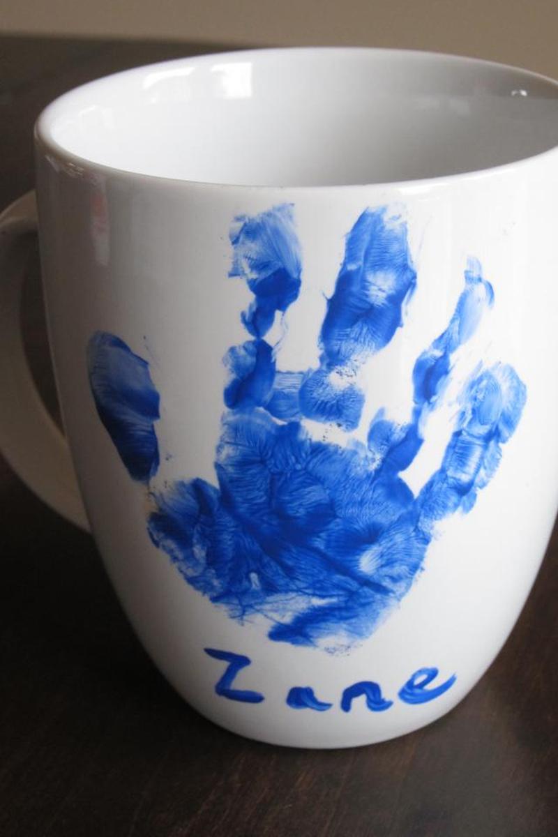 Эту очаровательную кружку легко сделать на праздник или просто сохранить момент в развитии вашего ребенка. Чтобы сделать эту поделку, нужны два человека, так как ссора с младенцем — самая сложная часть проекта.