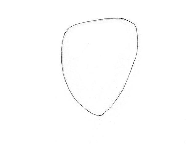 Вы начнете с округлого треугольника, похожего на зерно кукурузы. Держите острие вниз, широким плоским концом вверх. Это сформирует туловище вашей лягушки.