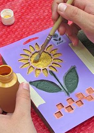Закончите раскрашивание трафарета. - Когда вы закончите рисовать дизайн, аккуратно снимите трафарет с вашего проекта. Будьте осторожны, чтобы не размазать трафарет при его удалении.