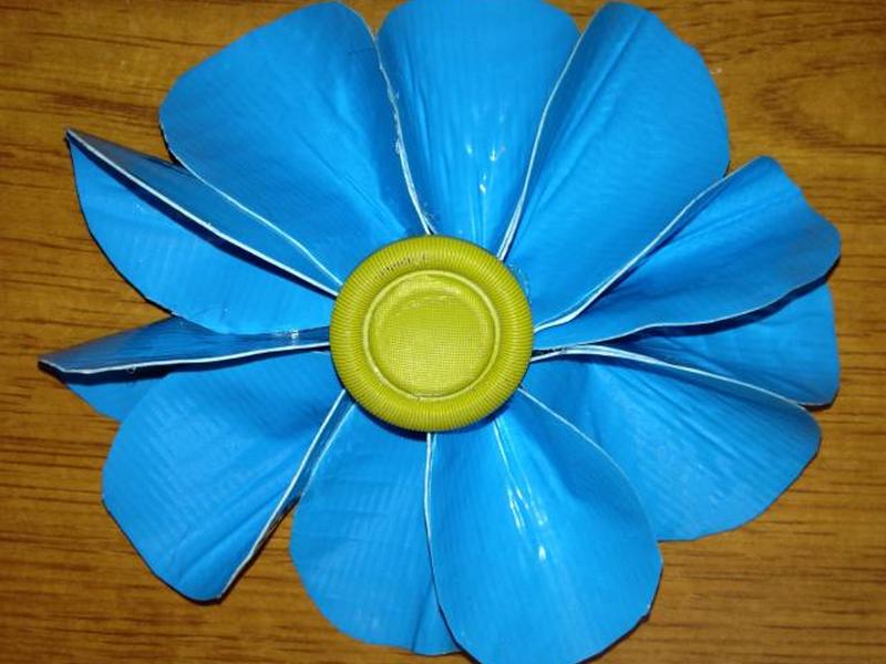 Вырежьте круг из центра изоленты и приклейте его к задней части цветка. Теперь вы можете прикрепить булавку или зажим по своему выбору к кругу на обратной стороне цветка и носить его.