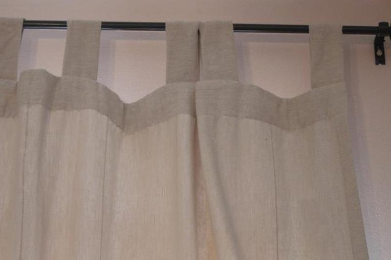 - Вкладки — вы будете создавать вкладки из непрерывной полосы, чтобы ускорить процесс и сохранить постоянную ширину вкладок. Вам понадобится полоска шириной три с половиной дюйма и достаточной длины, чтобы сделать все ваши вкладки. Каждый язычок будет иметь длину восемь дюймов, и вы будете располагать язычки через каждые шесть дюймов вдоль верхней части занавески. Чтобы узнать, какой длины должен быть язычок, умножьте количество язычков на восемь. При необходимости вы можете вырезать петлицы из нескольких полосок ткани.