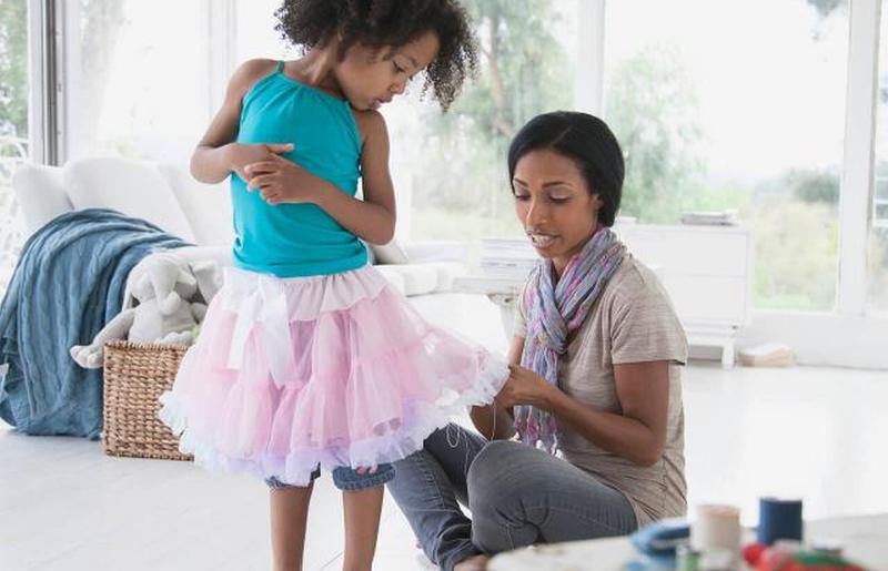- Для ребенка, который любит принцесс, модифицируйте стандартную юбку, чтобы у нее были присборенные места для подтягиваний и множество оборок.