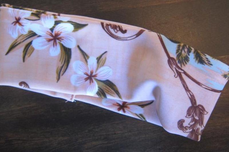 - Настройте швейную машину на прямую строчку с длиной стежка 3,5. Сшейте прямо по краю сложенной детали, соединив два конца повязки вместе. Обрежьте все нити, а потом наслаждайтесь своим творением.