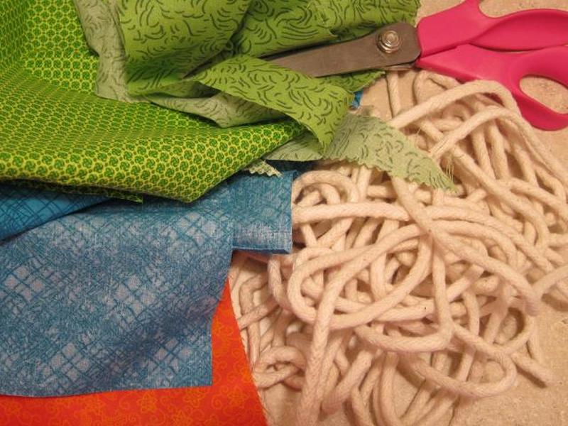 - Небольшие лоскуты хлопчатобумажной ткани трех цветов.