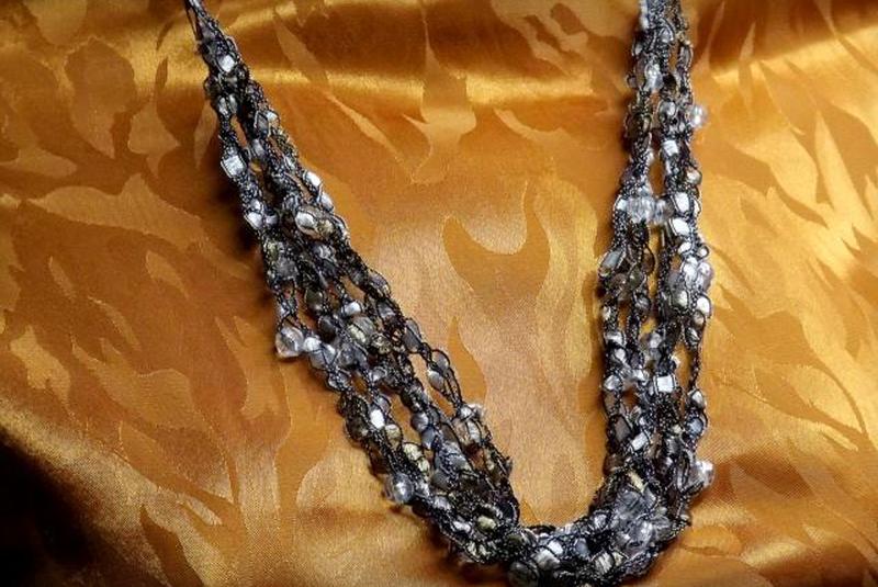 Связанное крючком колье из лент