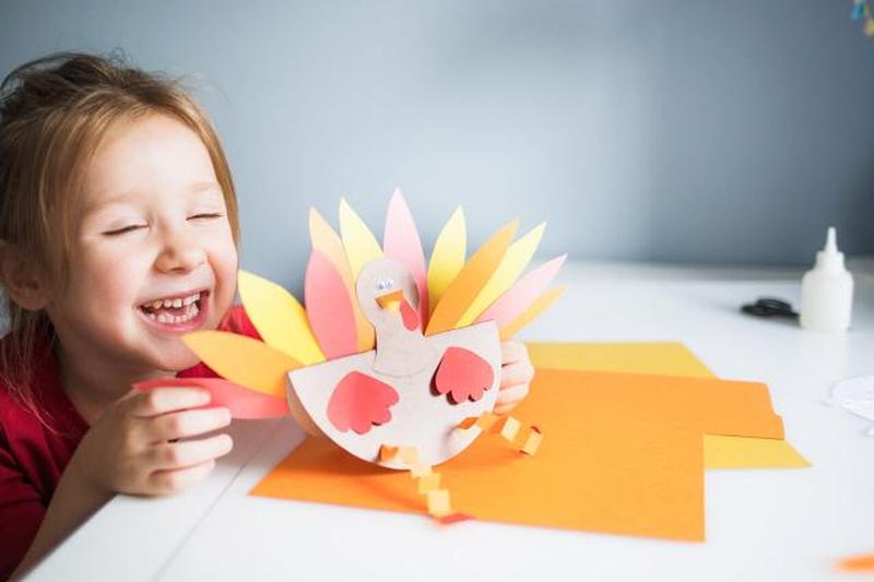 Дети могут создать эту забавную поделку в рамках празднования Дня Благодарения или заранее сделать ее вместе, чтобы она стала очаровательным украшением детского стола.
