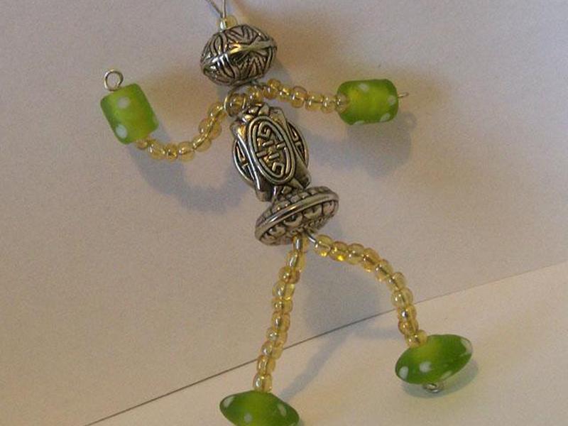 Люди из проволоки из бисера — это интересный способ познакомить детей с искусством вышивания бисером. Эти куклы можно использовать как игрушки в самодельном кукольном домике или повесить, чтобы сделать забавные украшения для детской комнаты. Если вы сделаете их из красных и зеленых бусинок, то сможете использовать их даже в качестве елочных украшений.