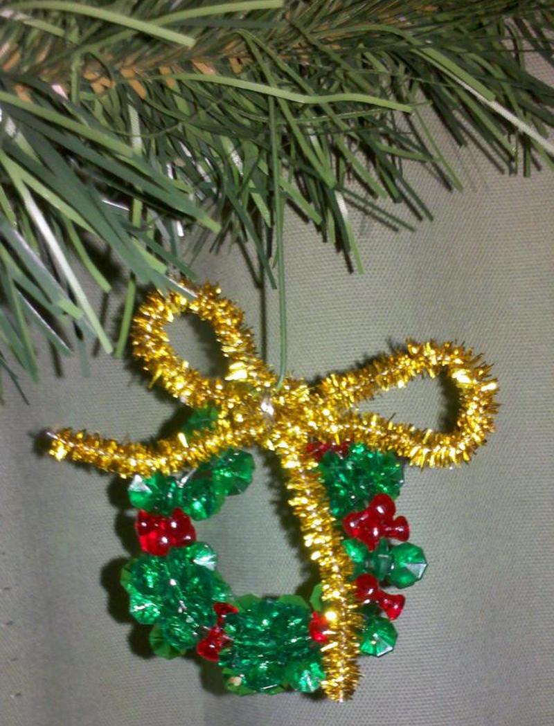 - Пусть ваш дошкольник скрутит трубочиститель в лук и прикрепит его к венку с помощью второго трубочистителя, намотанного вокруг центра бантика, через середину венка.