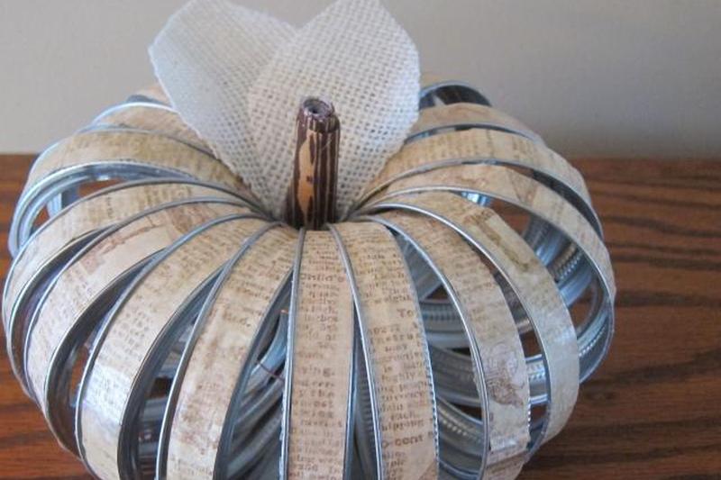 Если у вас дома есть несколько дополнительных колец для консервных банок, вы можете создать это очаровательное украшение из тыквы за пару часов. Он станет отличным украшением вашего праздничного стола или акцентом на мантии или книжном шкафу.
