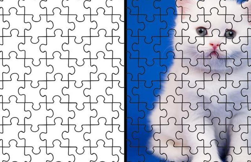Файл PNG представляет собой прозрачный оверлей. Этот файл можно использовать в вашем любимом программном обеспечении для редактирования изображений, чтобы добавить контуры кусочков головоломки поверх цифровой фотографии или компьютерной иллюстрации, как показано на фотографии котенка выше. Как использовать Adobe Photoshop — самое известное программное обеспечение для редактирования изображений, которое можно использовать для этой цели, но для создания вашей головоломки должно быть достаточно бесплатной программы, такой как Бесплатные учебники по GIMP .