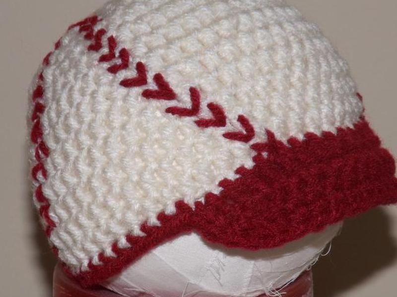 - На выкройке изображена бейсболка, которая на самом деле напоминает бейсбол, но если вы предпочитаете стиль бейсболки, вы можете убрать стежки с буквой «v» и связать кепку крючком любого цвета.