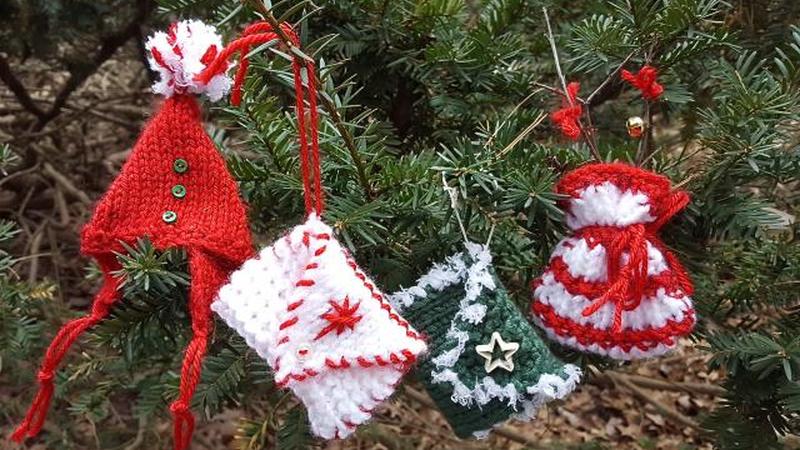 Нет ничего красивее елки с украшениями ручной работы. Для их изготовления вам понадобятся спицы, немного пряжи и фантазия, чтобы сделать ветки ярче.