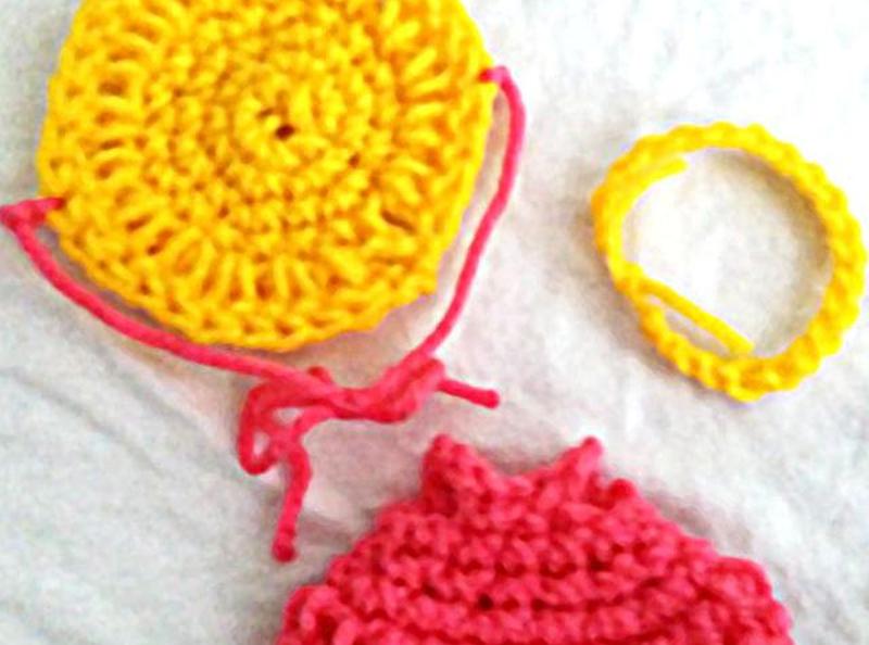 - CrochetnMore рекомендует использовать пряжу синель и крючок размера К., чтобы сделать этот симпатичный капюшон для куклы.