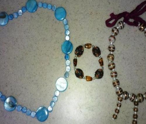 - Нанижите большие стеклянные бусины и маленькие белые бусины, пока не закончите ожерелье.