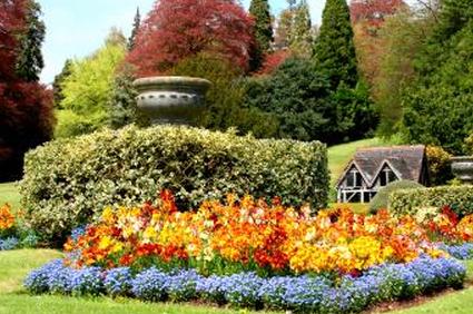 Глядя на английские сады, цветы — это только часть картины. Пышные лужайки, посаженные на пологих склонах холмов с извилистыми гравийными дорожками, напоминающими парк, являются примером английского садового стиля. В большинстве английских садов есть пруд или небольшой водоем, обычно с мостом или романтическим гротом. Цветы, посаженные в качестве цветовых бордюров среди деревьев и кустарников, создают желанные цветочные и ароматные клумбы. Бордюры, как правило, засажены цветами, и все они выглядят естественно. Более поздние дополнения к стилю английского сада включают статуи и «руины», которые придают саду романтический и загадочный вид.