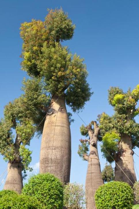 - Adansonia grandidieri растет в диком виде на острове Мадагаскар до 80 футов в высоту с цилиндрическим стволом до 10 футов в диаметре.