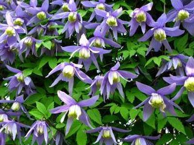Клематис альпийский (Clematis Alpina) — очень красивое растение, цветущее весной. Цветки поникающие, четыре больших чашелистика нежно-голубого цвета с беловатым краем, а иногда и почти полностью белые. Цветок двухдюймовый или более в поперечнике. Син. Атраген.