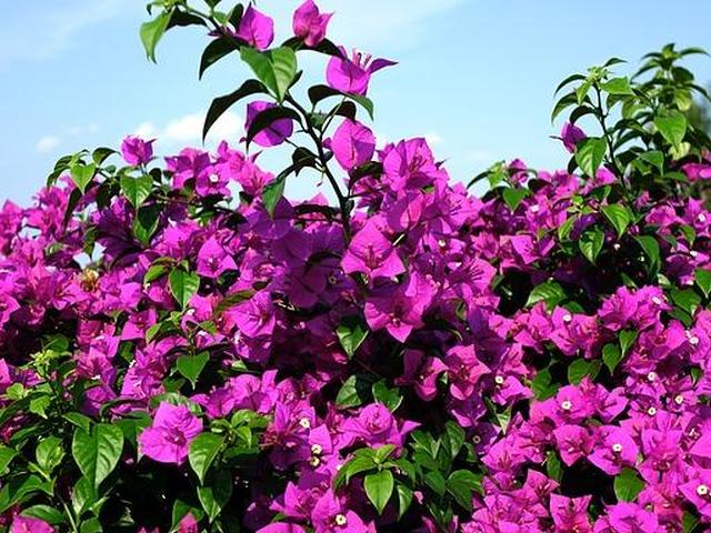 Бугенвиллиям присущ праздничный вид в ландшафте. Кажется, что они переполнены цветами и могут мгновенно украсить атмосферу любого солнечного сада.