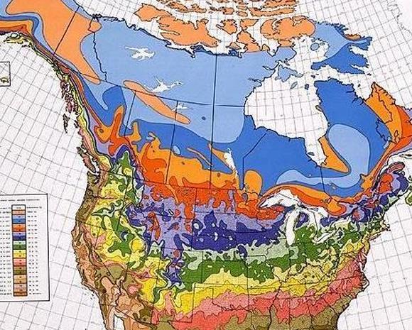 Одним из наиболее важных соображений является то, сможет ли растение успешно перезимовать, то есть выдержит ли оно самую холодную часть зимы в своем новом доме? Зоны устойчивости USDA были разработаны, чтобы помочь садоводам ответить на этот вопрос, нанеся на карту самые низкие зимние температуры в каждом регионе Северной Америки. Каждый цвет представляет зону со средней самой низкой зимней температурой, показанной в ключе.