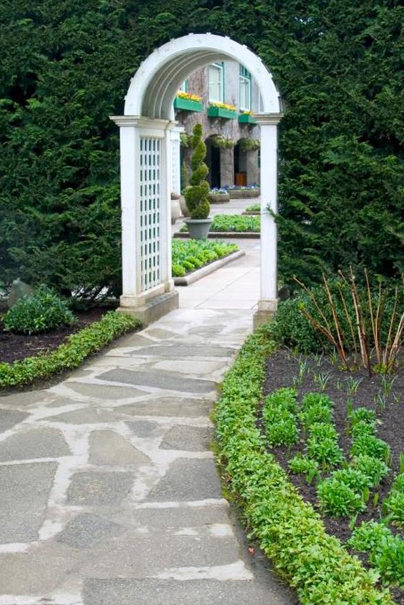 Беседка — это решетка, которая проходит над дорожкой и обычно используется у входа в сад. Беседки часто объединяют с другими вертикальными элементами, отделяющими одно пространство от другого, такими как забор или живая изгородь.
