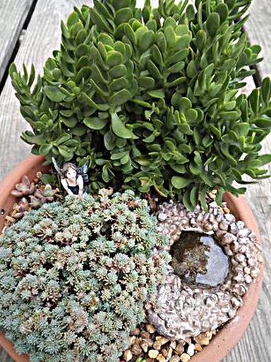 Суккуленты могут быть идеальными для контейнерных сказочных садов, поскольку они, как правило, маленькие и медленно растут.